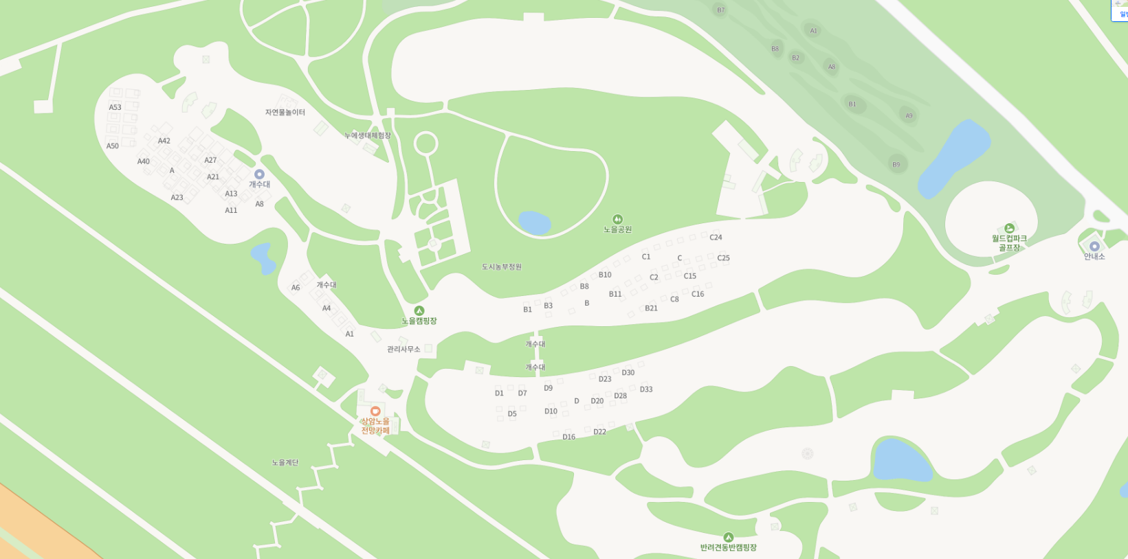 월드컵공원 내 노을공원에 위치한 캠핑장으로