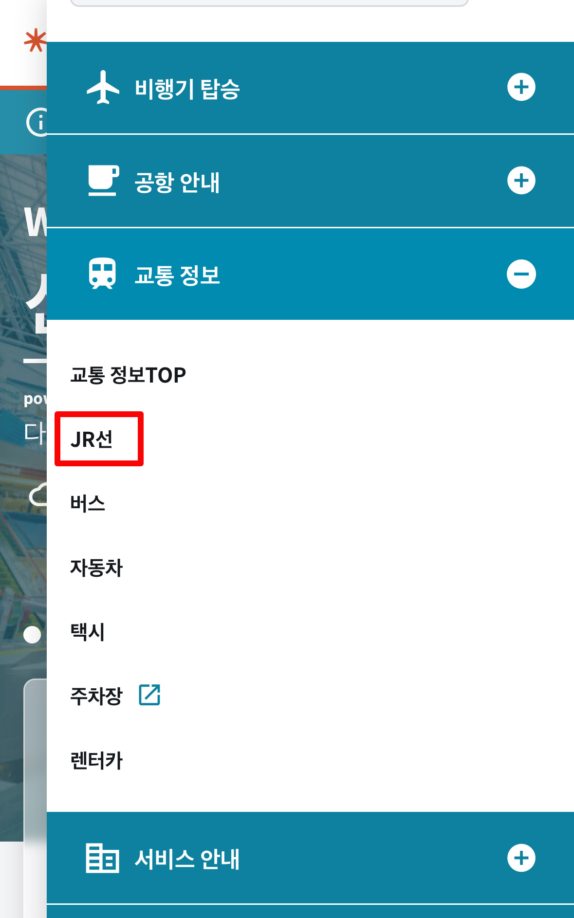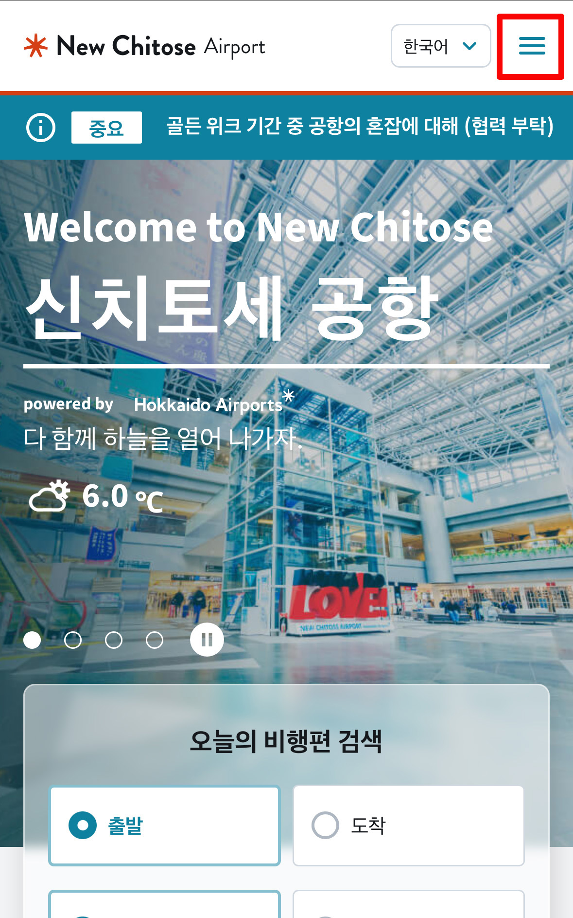 2. 신치토세공항 메인 우측 위 ≡ 모양을 클릭