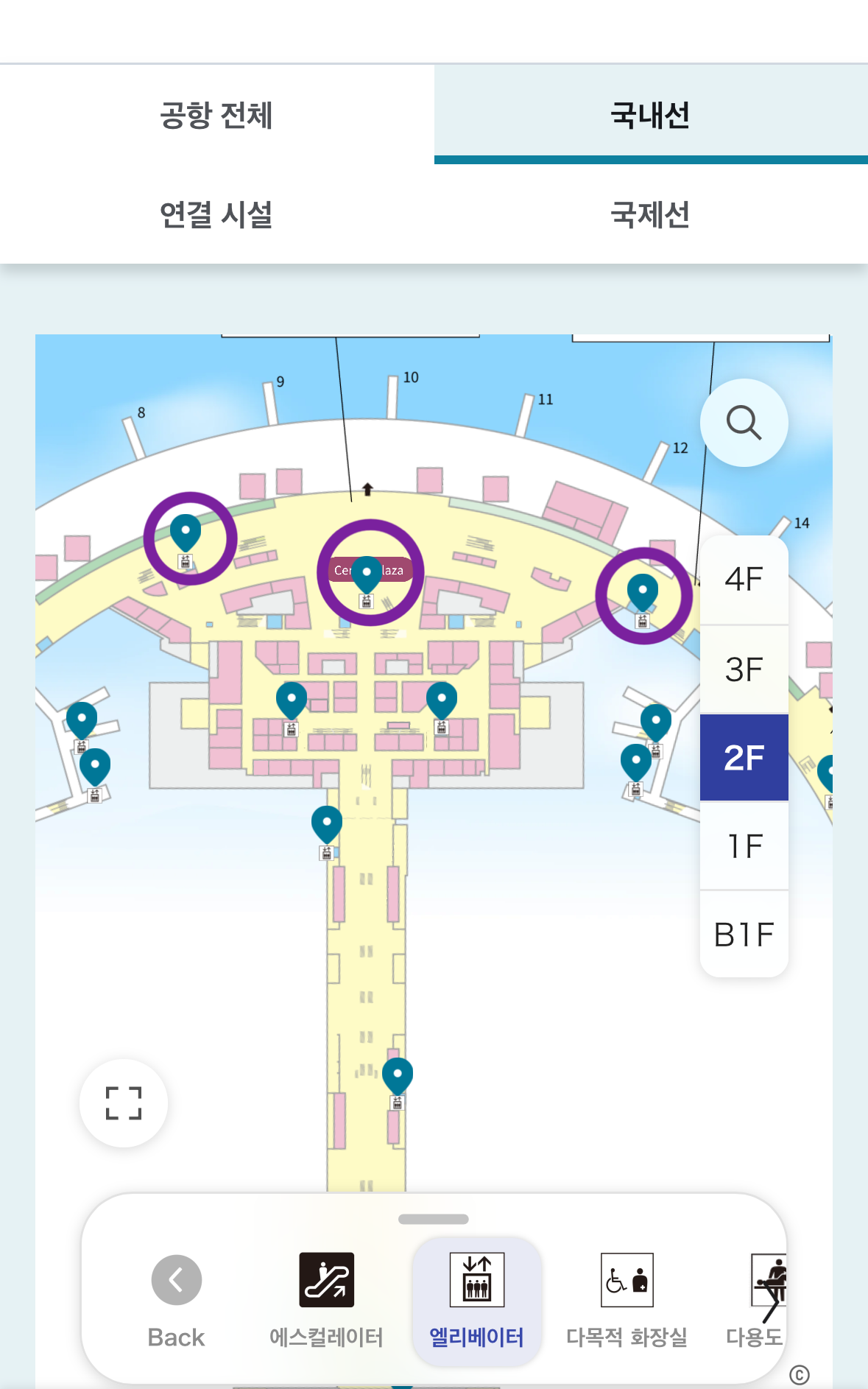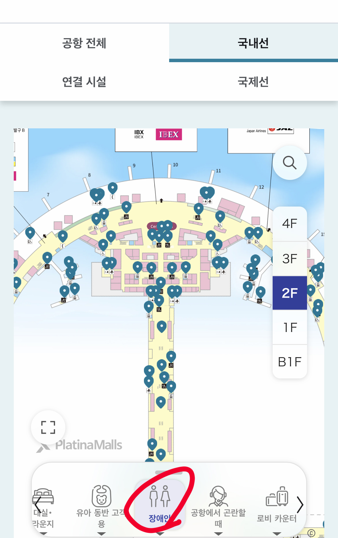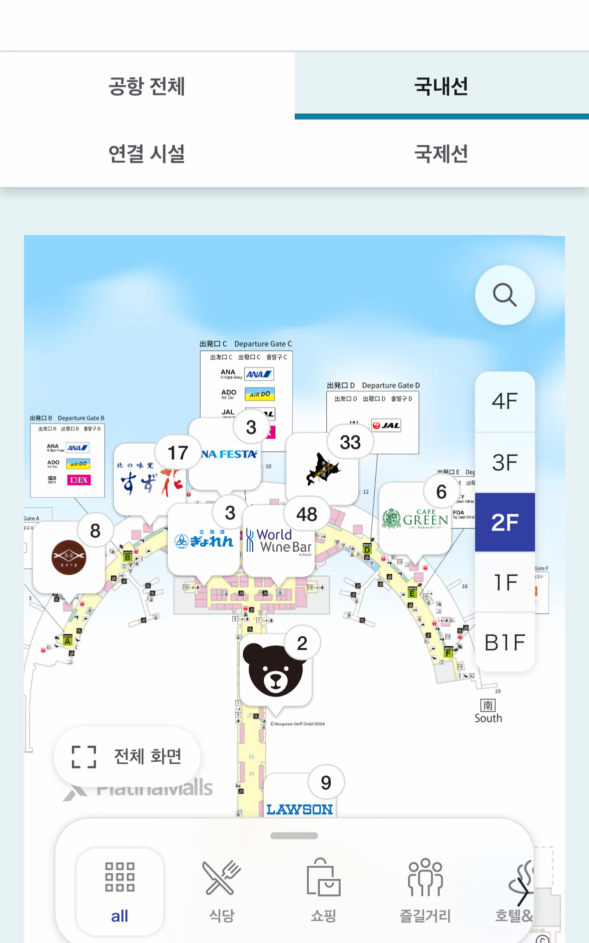 2층은 국제선, 국내선 쪽에 각 하나씩