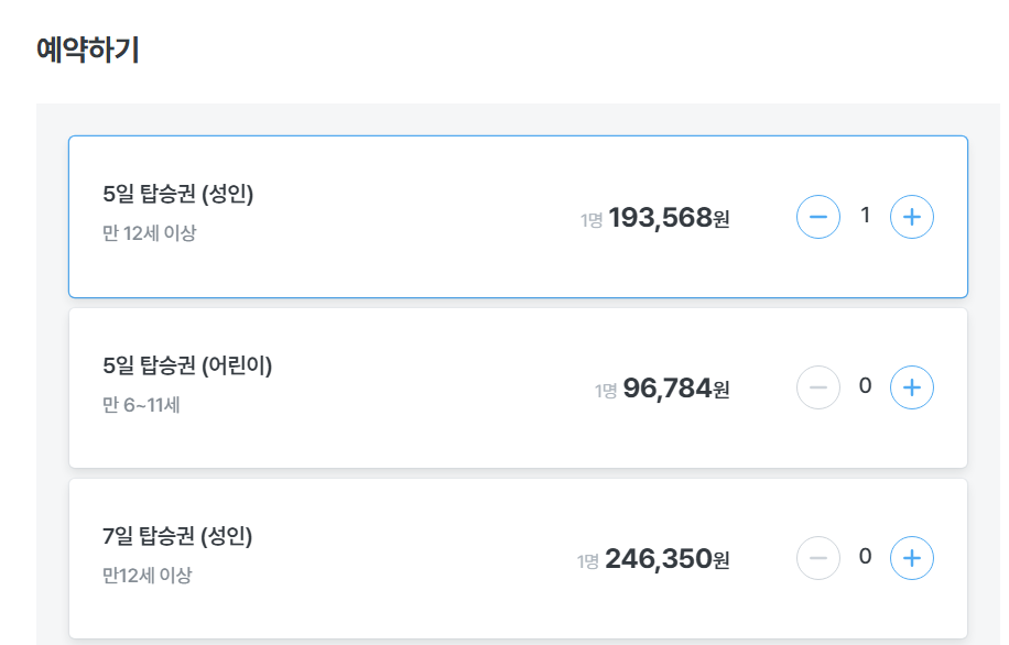 패스는 5일, 7일, 10일 옵션이 있어서
