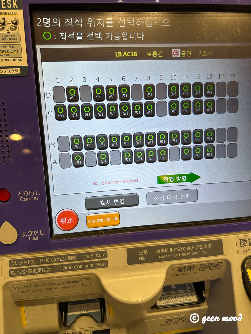 > 구간, 날짜, 시간, 자리를 선택/ 지정석 발권