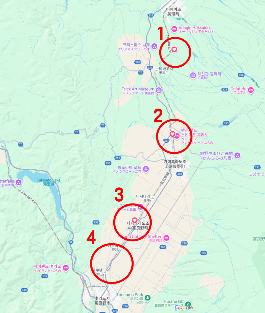 후라노, 비에이 지역을