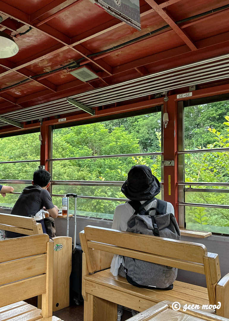 양 옆으로 창문이 뚫려 있는 개방형 객차라서