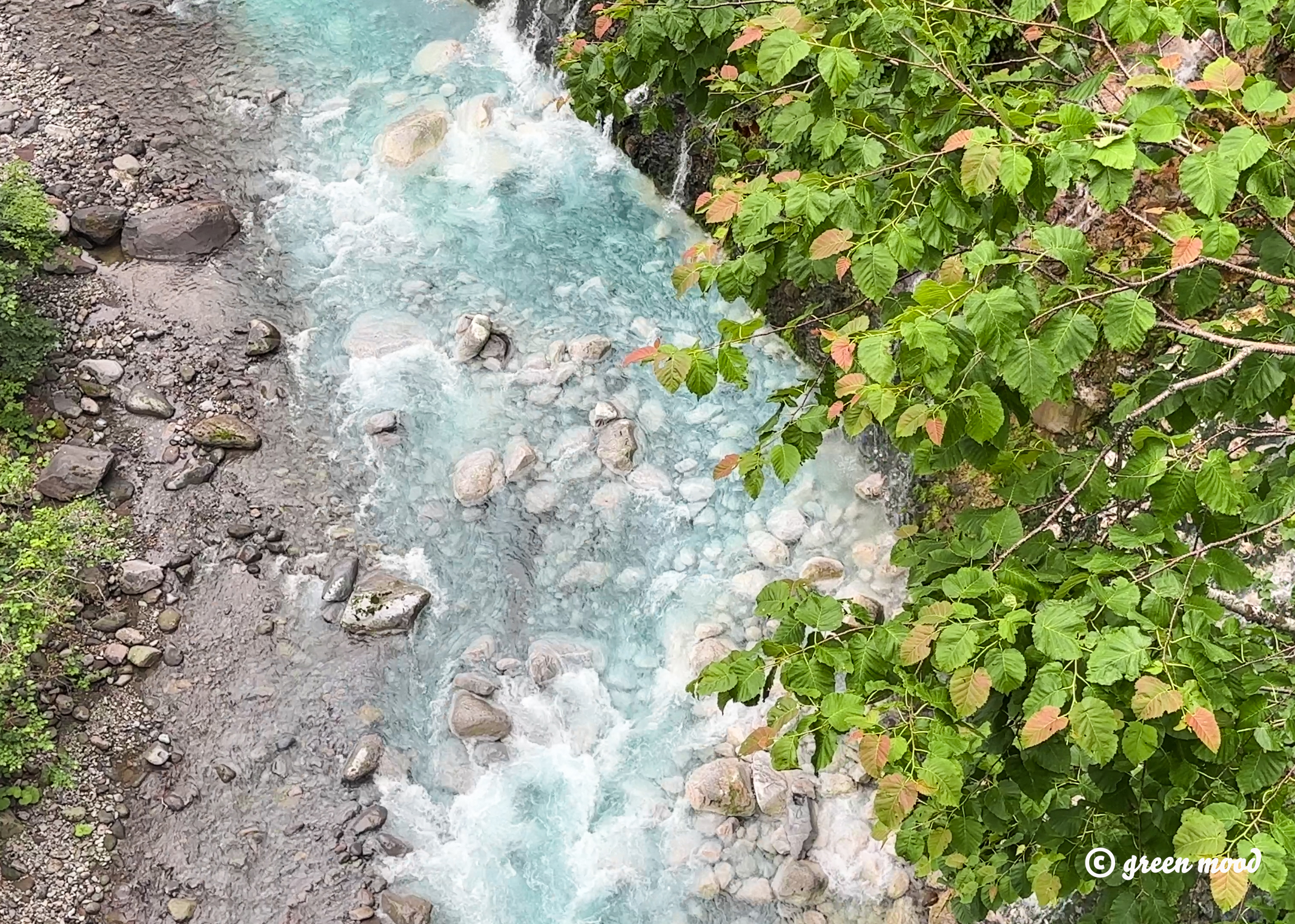 지하수가 섞이면서 빛이 산란되어 생기는