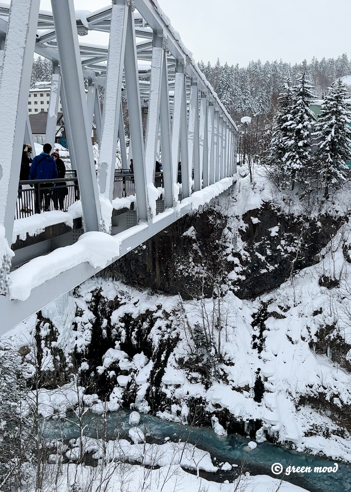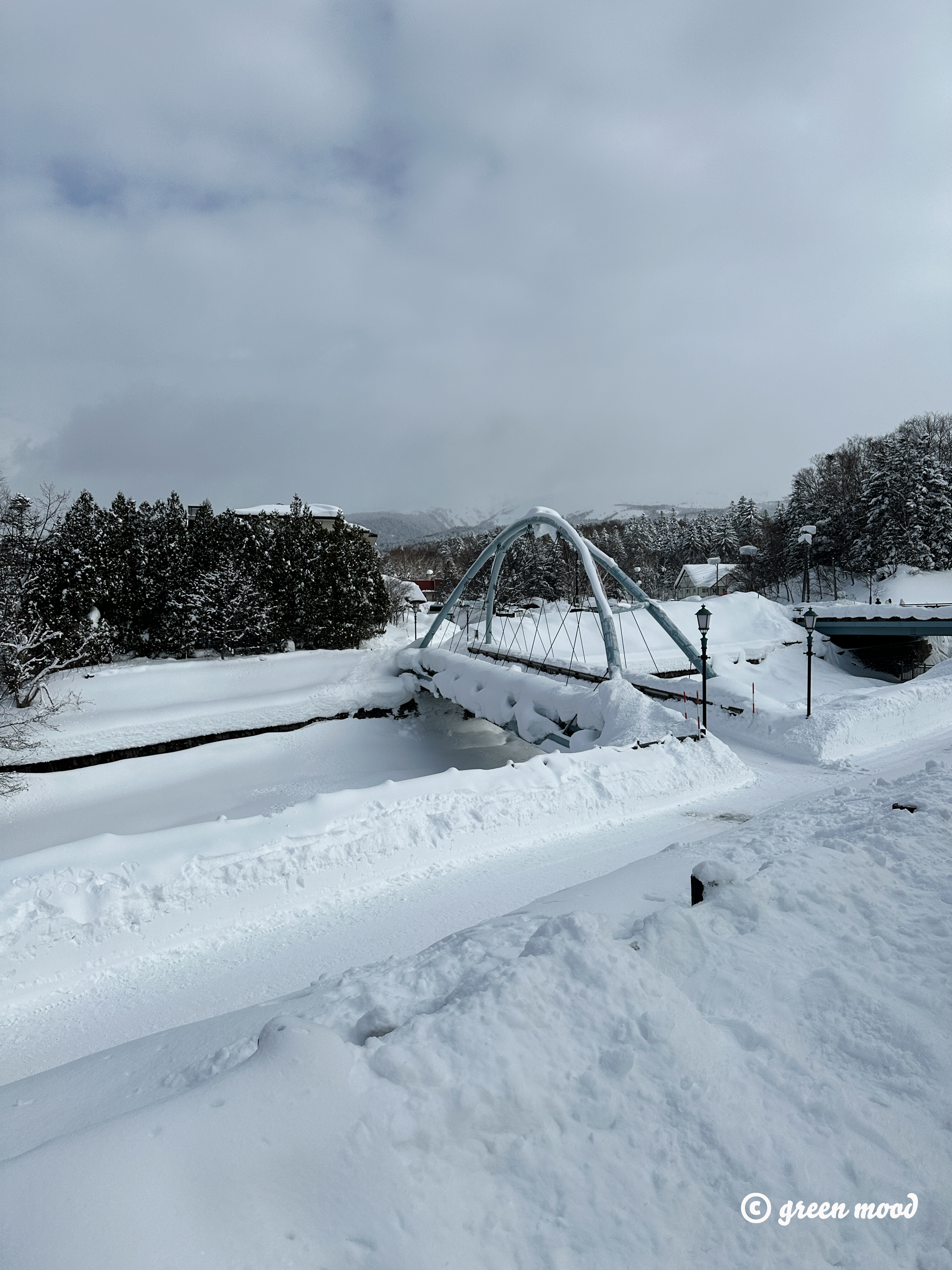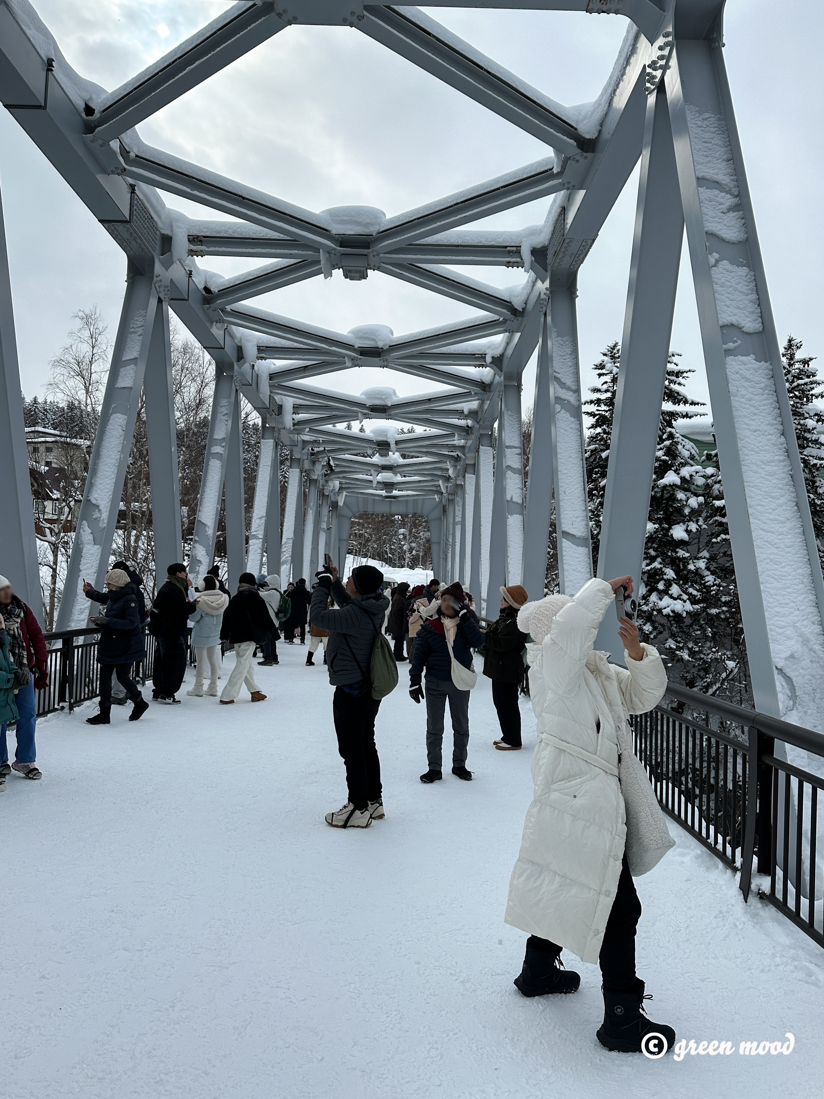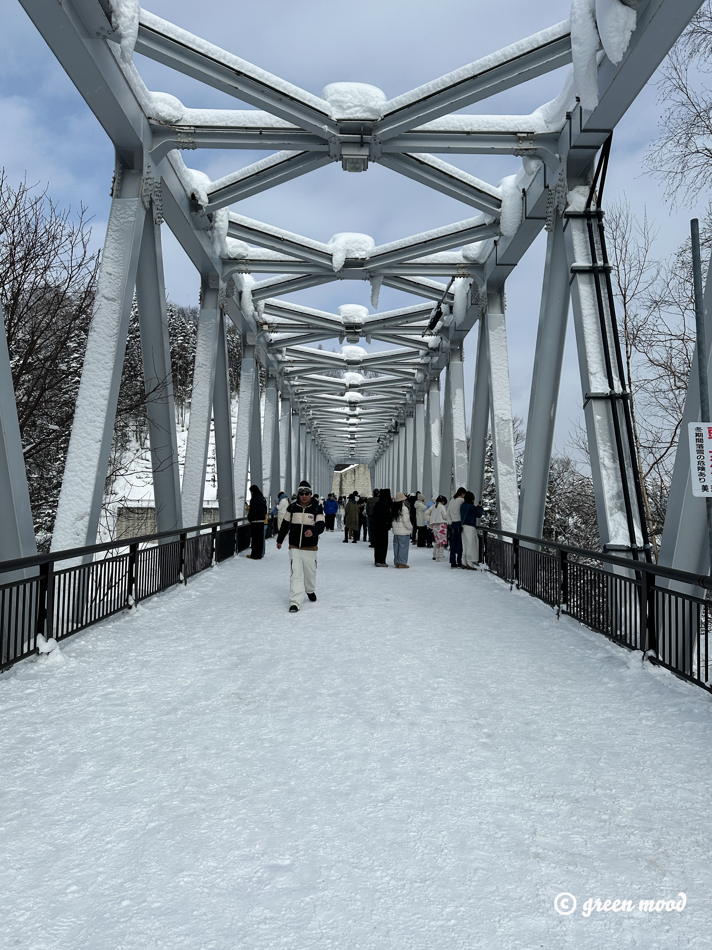 다리에 눈이 쌓여서 지면이 높아지면서